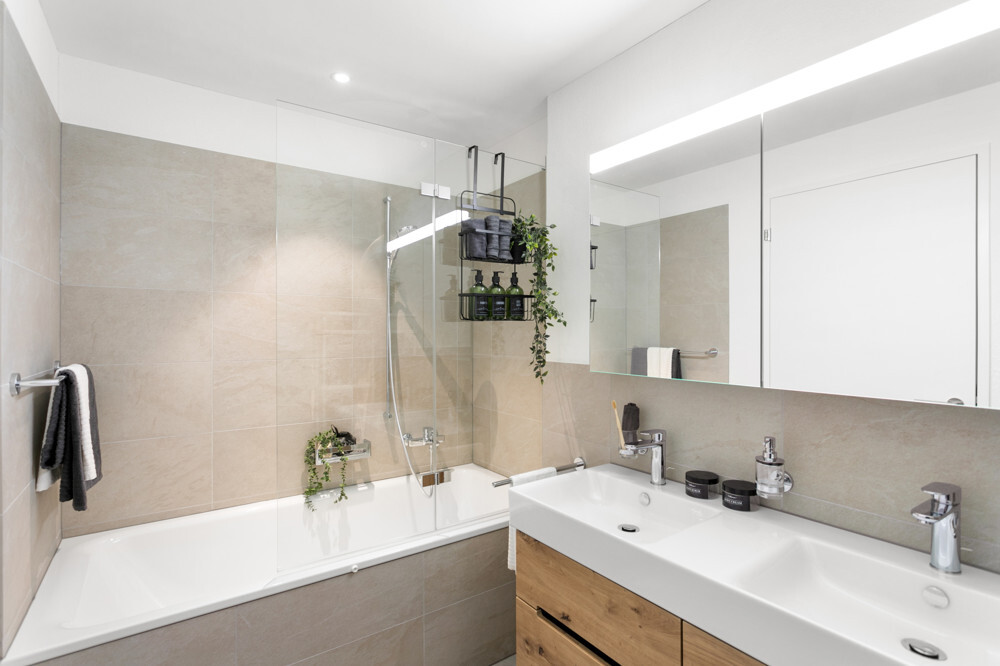 Die durchdachte Raumaufteilung über drei Etagen schafft das Gefühl eines Reihenhauses, kombiniert mit den Vorzügen des Stockwerkeigentums. Großzügige Fensterfronten bringen viel Licht in die Räume und eröffnen den Blick ins Grüne – der direkte Gartenzugang lädt zum Entspannen, Gärtnern oder geselligen Beisammensein ein. Das Wohnkonzept überzeugt mit einem modernen, zeitlosen Design und folgenden Highlights: