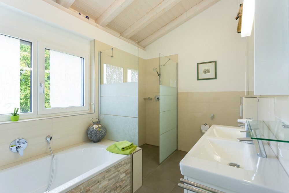 – zwei Nasszellen im OG und ein Gäste-WC mit Waschturm im EG