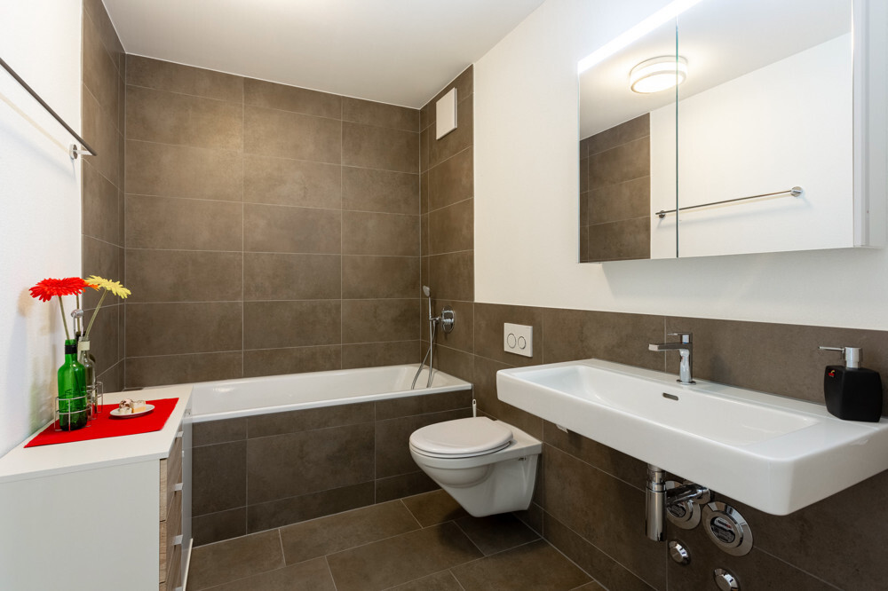 – Badezimmer mit Einbauschränken und grosser, schwellenloser Dusche
