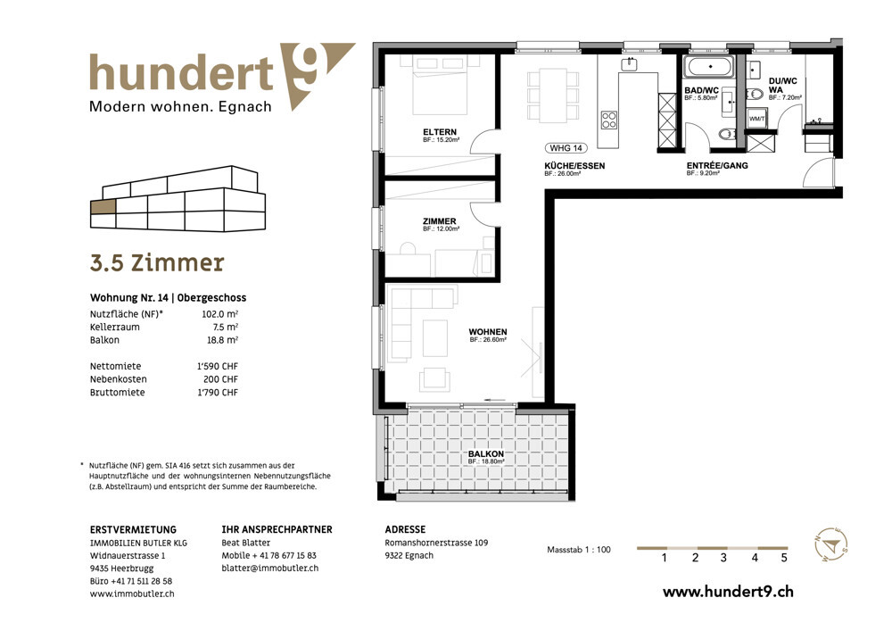 Wie gefällt ihnen diese moderne Etagenwohnung? Rufen Sie uns an und fordern Sie weitere Informationen an. Ihr Immobutler, Beat Blatter, +41 78 677 15 83 oder blatter@immobutler.ch