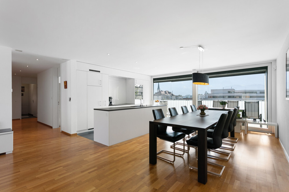 Diese äusserst grosszügige Eigentumswohnung überzeugt mit einem durchdachten und lichtdurchfluteten Grundrisskonzept sowie hochwertigen Materialien. Durch die zentrale Lage mit schöner Aussenterrasse und Weitsicht und der vorhandenen Liftanlage ist diese schöne Wohnung ideal für Jung und Alt. Weitere Highlights sind: