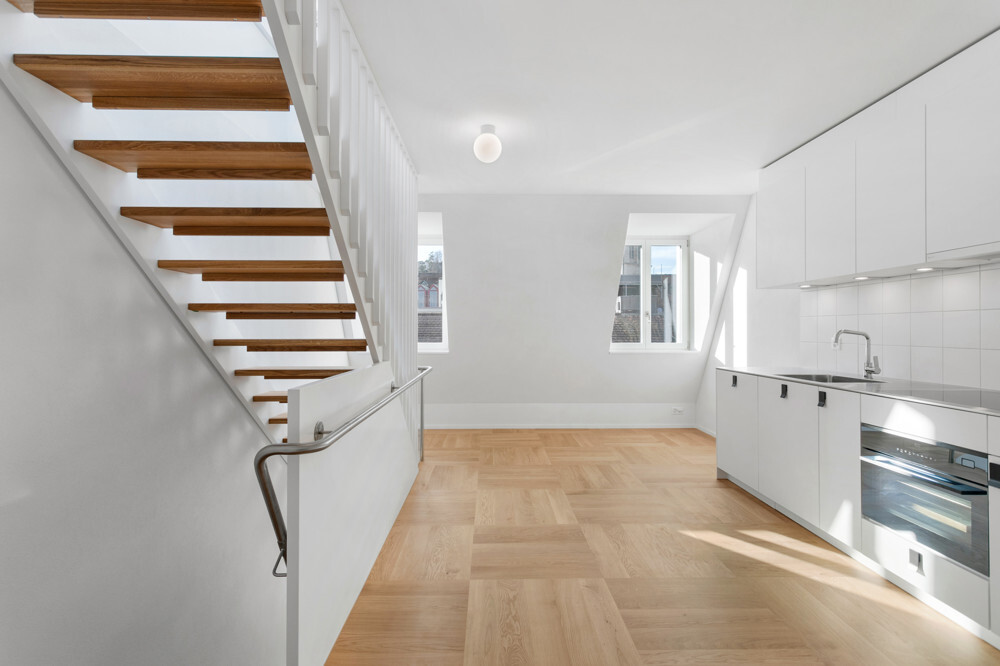 Diese einzigartige 3-Zi.-Maisonette-Wohnung im Dachgeschoss überzeugt mit folgenden Highlights: