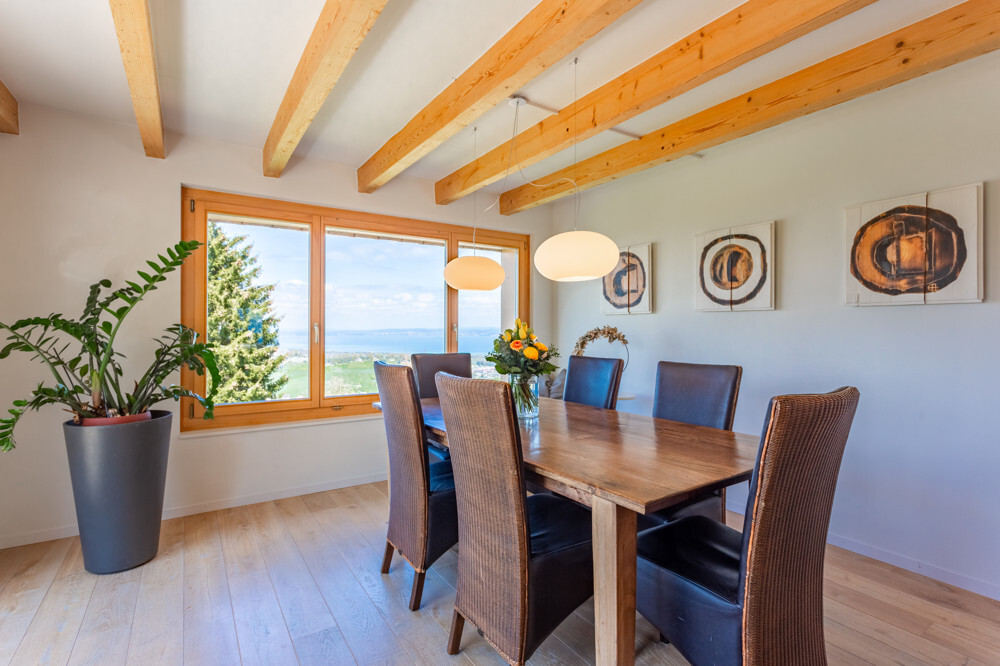 – heller Wohn- und Essbereich mit Zugang zum Sitzplatz und Garten mit Bodensee-Panorama