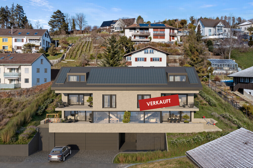 An erhöhter Lage mit schönem Weitblick und in kurzer Gehdistanz zu Kindergarten, Schule und ÖV entsteht ein top modernes Neubau-Doppeleinfamilienhaus mit Wintergarten und komfortabler Doppelgarage. Die Häuser sind einseitig angebaut und verfügen über eine gemeinsame Einfahrt. Ansonsten sind die Haushälften voll autonom und verfügen über jeweils ein eigenes Heizsystem.